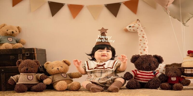 Ảnh sinh nhật cho trẻ em thường mang màu sắc tươi sáng, vui nhộn với nhiều đạo cụ dễ thương như bóng bay, bánh kem, thú bông hoặc mô hình theo chủ đề. Các bé thường có cảm xúc tự nhiên nên dễ tạo ra những khoảnh khắc đáng yêu và sống động.