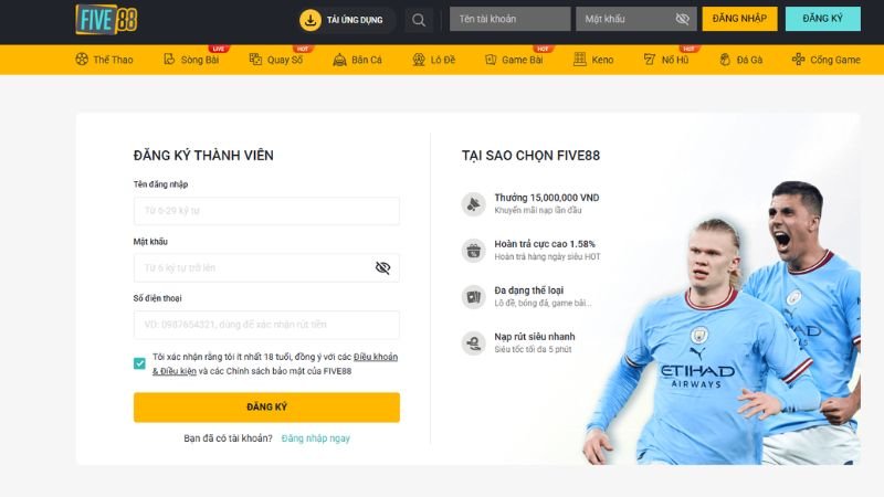 Hướng dẫn các bước đăng ký Five88 nhanh và chuẩn xác